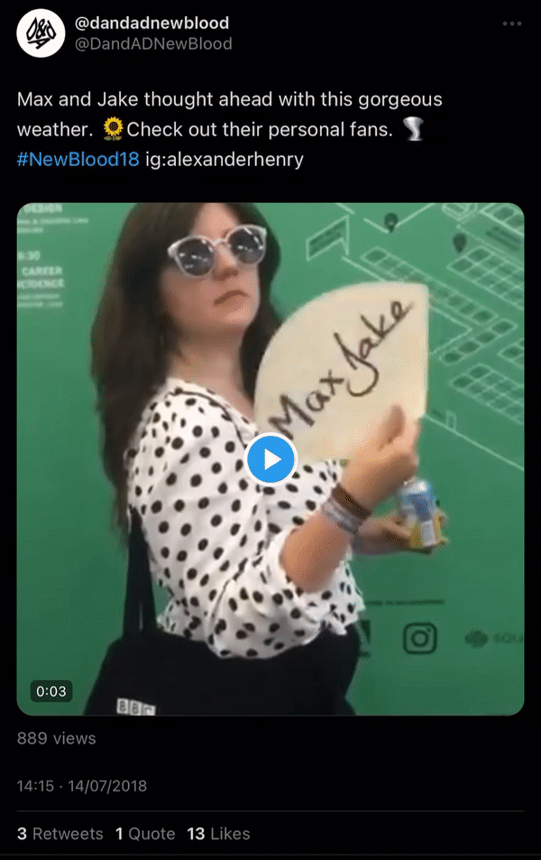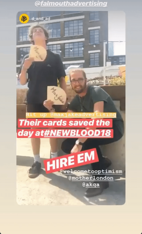 To get our portfolio in everyone's face at D&AD NewBlood, we printed 2,000 fans that doubled-up as business cards. We prayed to the Ad gods for hot weather, and our prayers were answered.